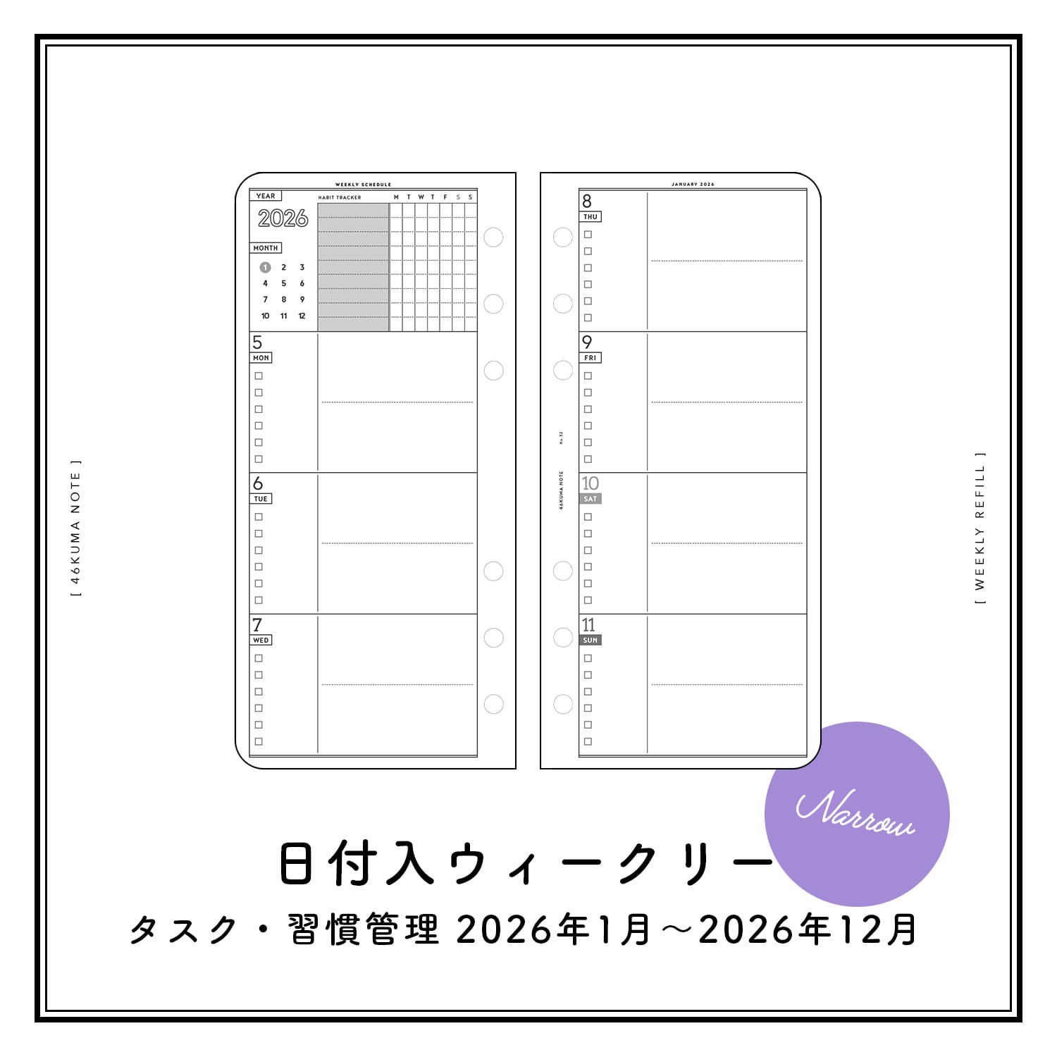 No.32 日付入ウィークリー(タスク&習慣管理・ナローサイズ)