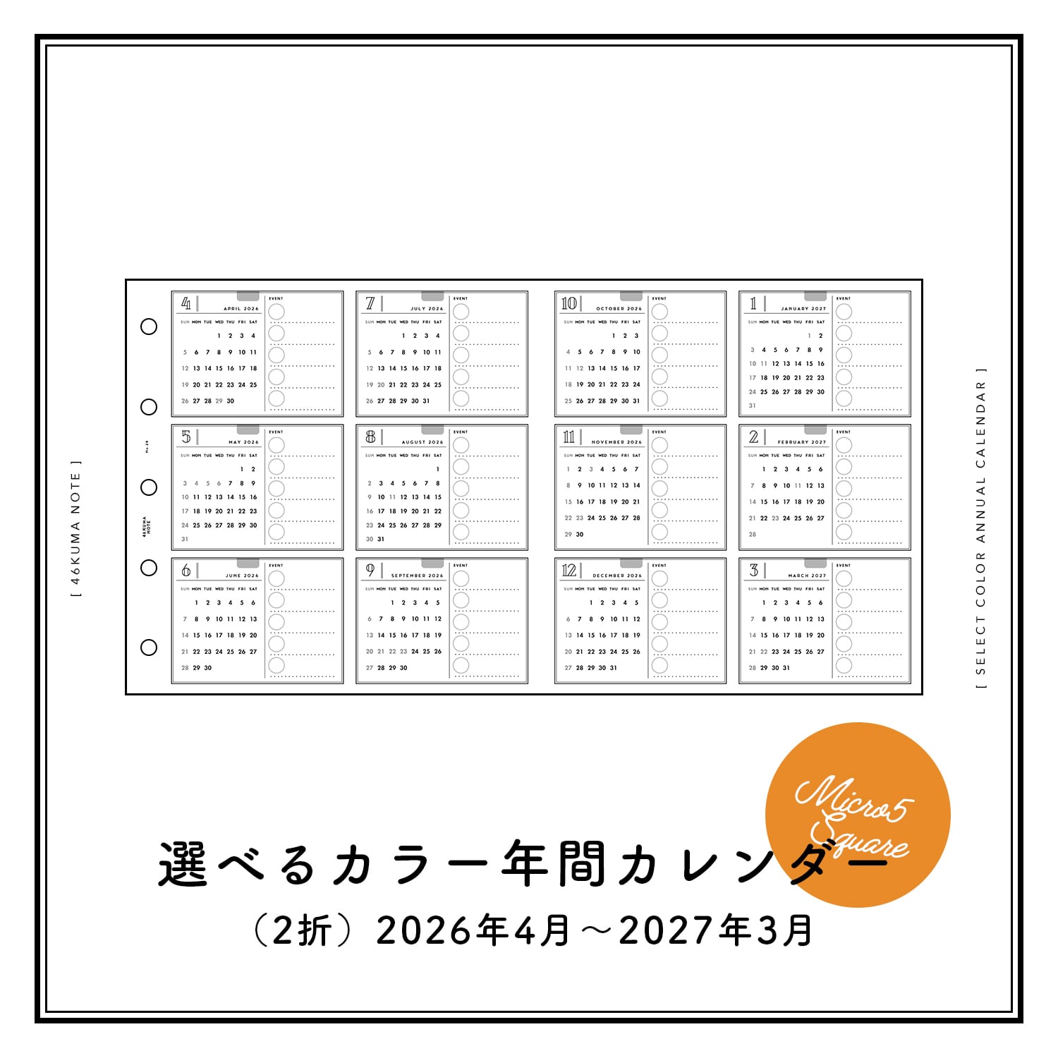 2026年4月〜2027年3月(1シート)