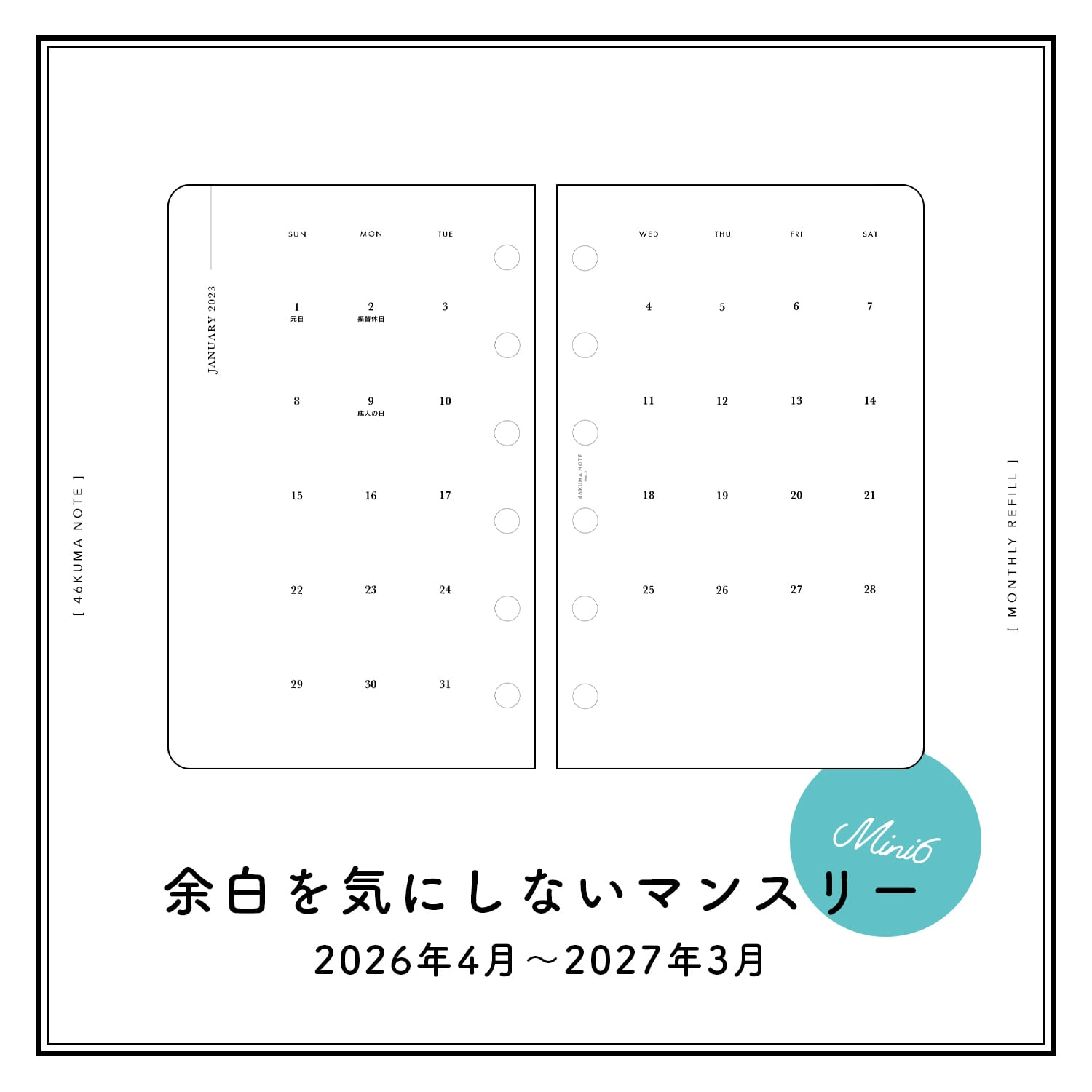 No.3 余白を気にしないマンスリー(ミニ6サイズ)