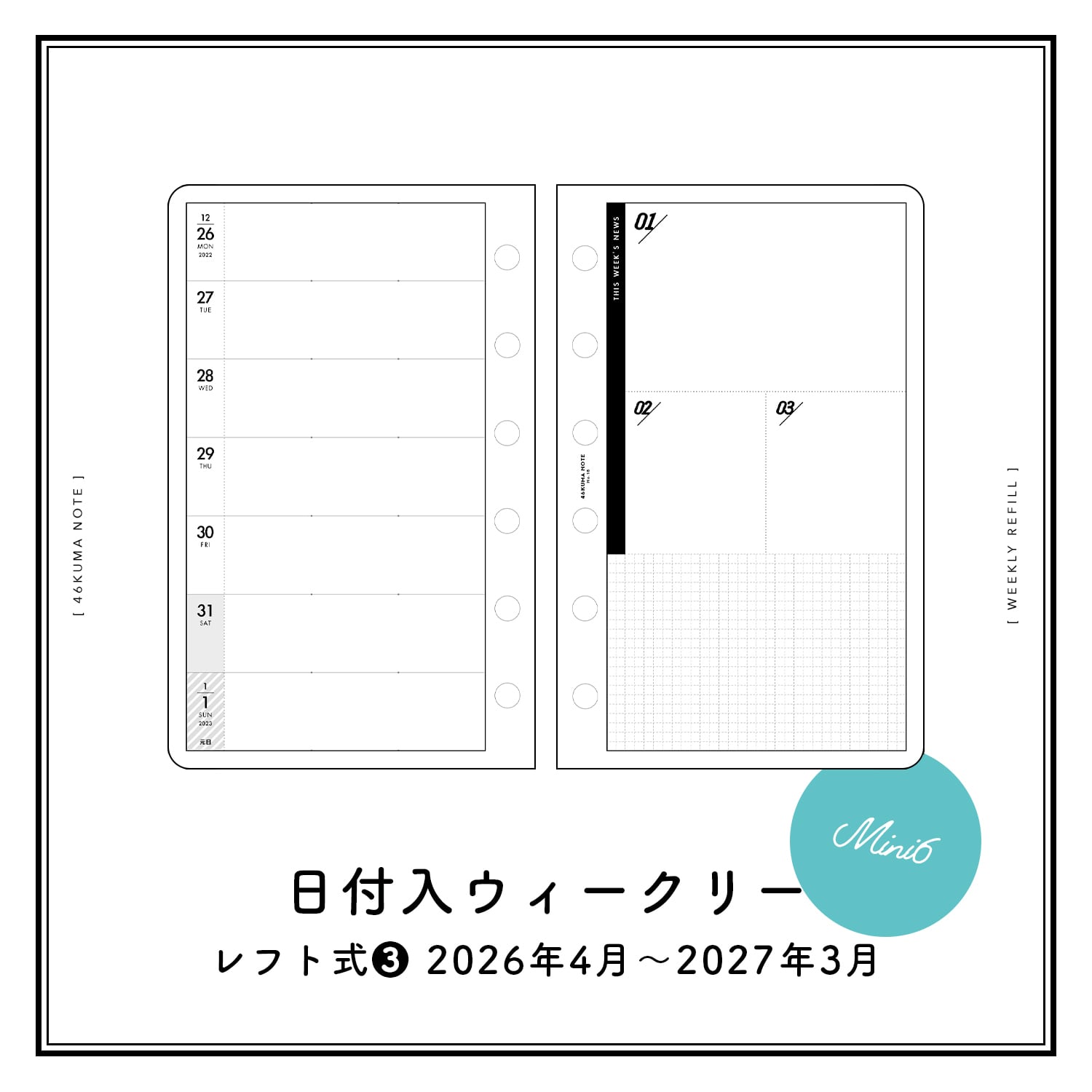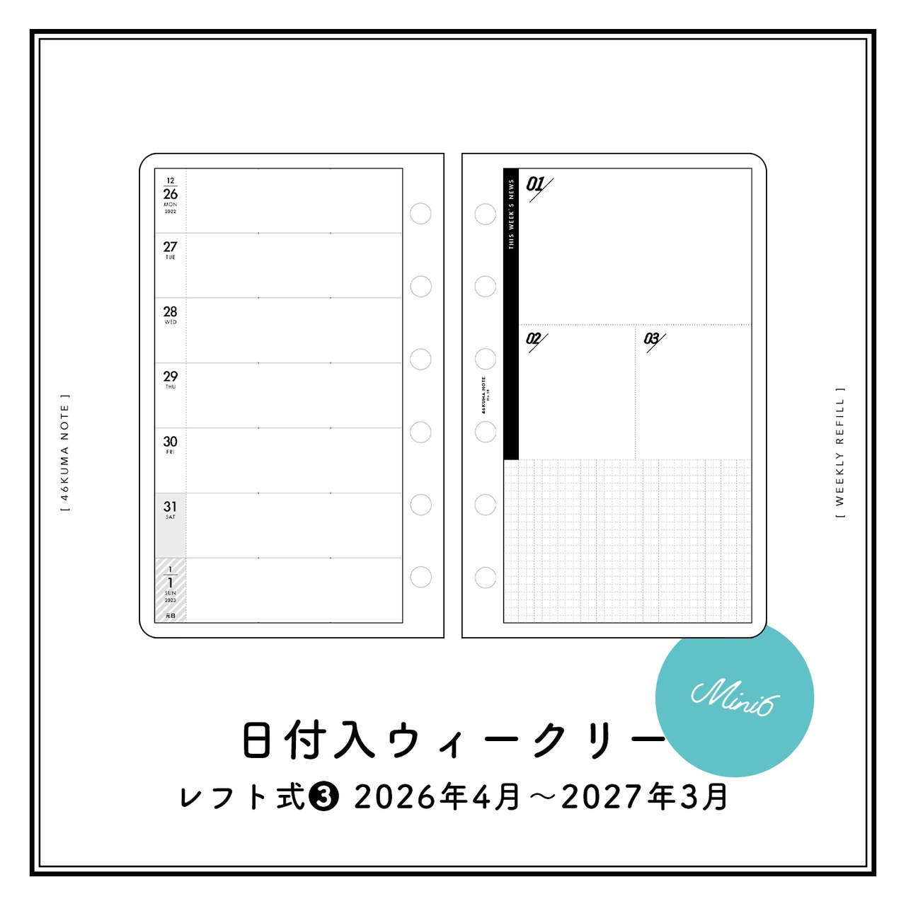 No.18 日付入ウィークリー(レフト式❸・ミニ6サイズ)