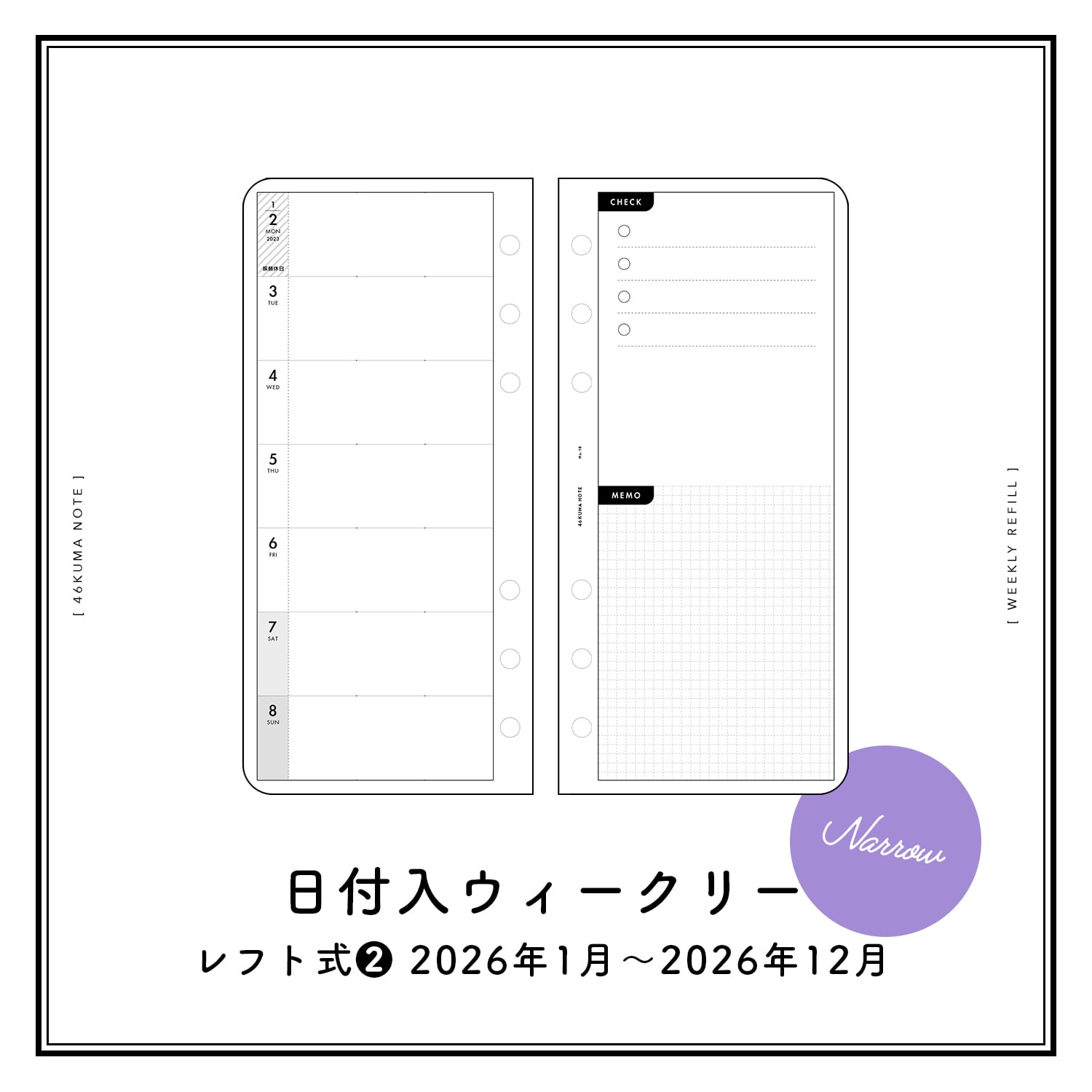 No.18 日付入ウィークリー(レフト式❷・ナローサイズ)