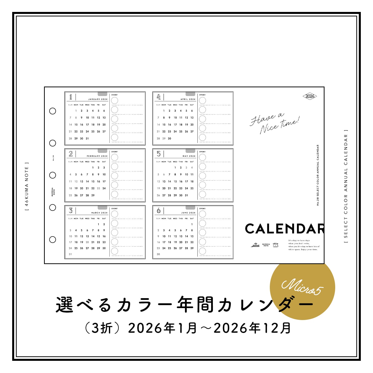 No.28 選べるカラー年間カレンダー(3折・M5サイズ)