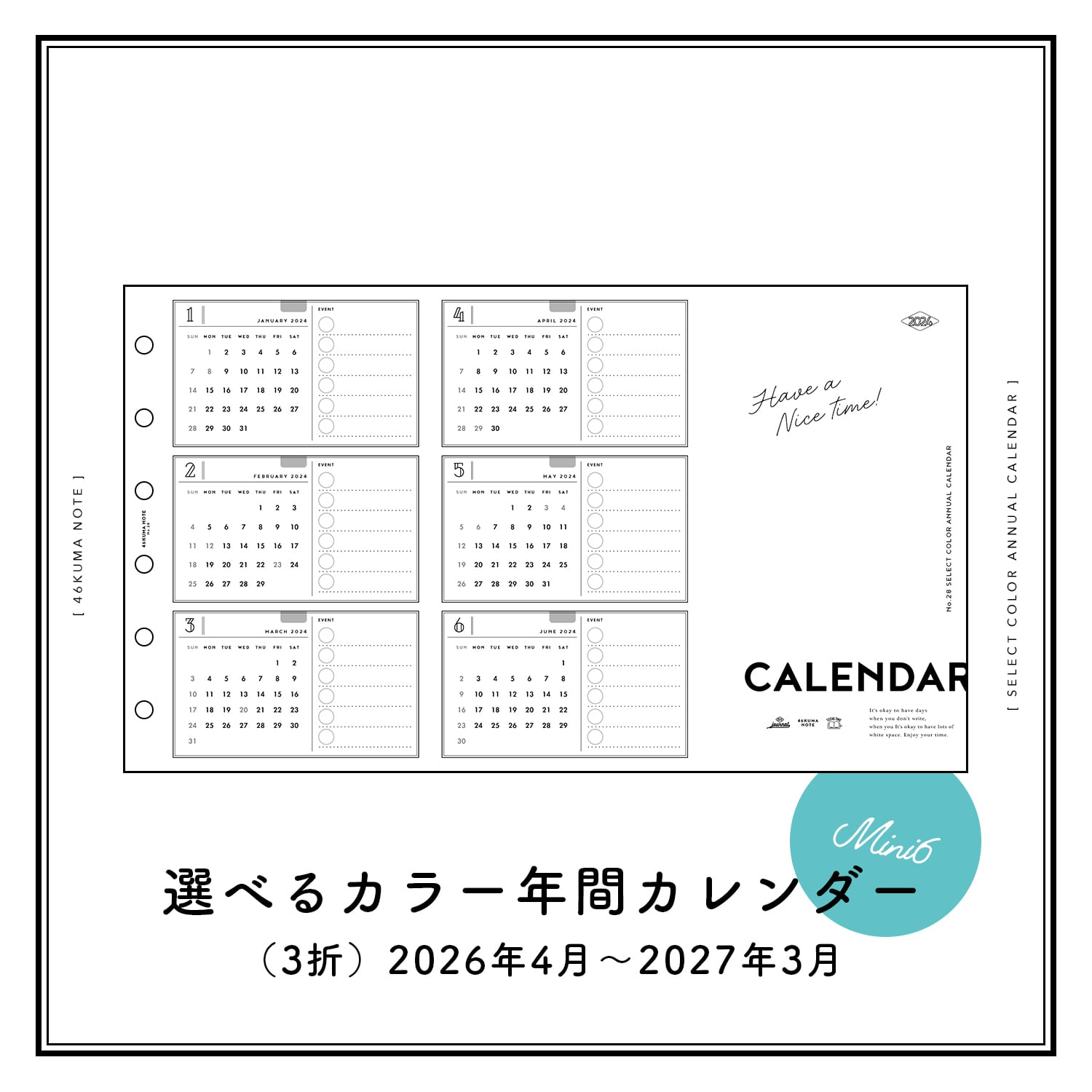 No.28 選べるカラー年間カレンダー(3折・ミニ6サイズ)